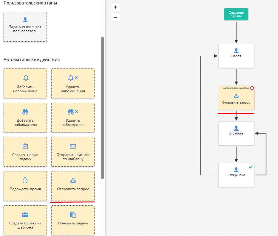 1. Создать робота в разделе «Тогда» выбрать «Выполнить автодействие» и выбрать «Отправить запрос»