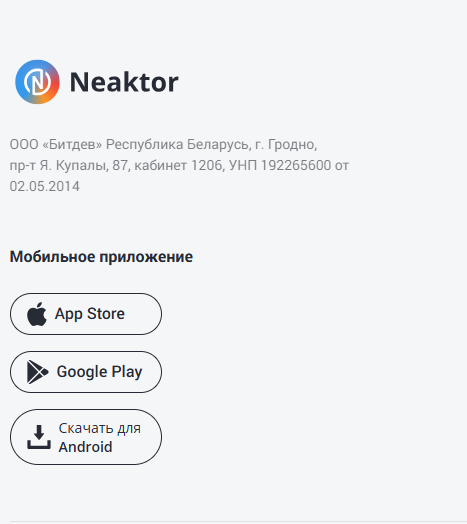 Для гарантированной безопасности скачивайте приложение Neaktor, переходя по ссылкам с нашего официального сайта https://neaktor.com/ или из проверенных магазинов App Store и Google Play. Берегите свои данные.