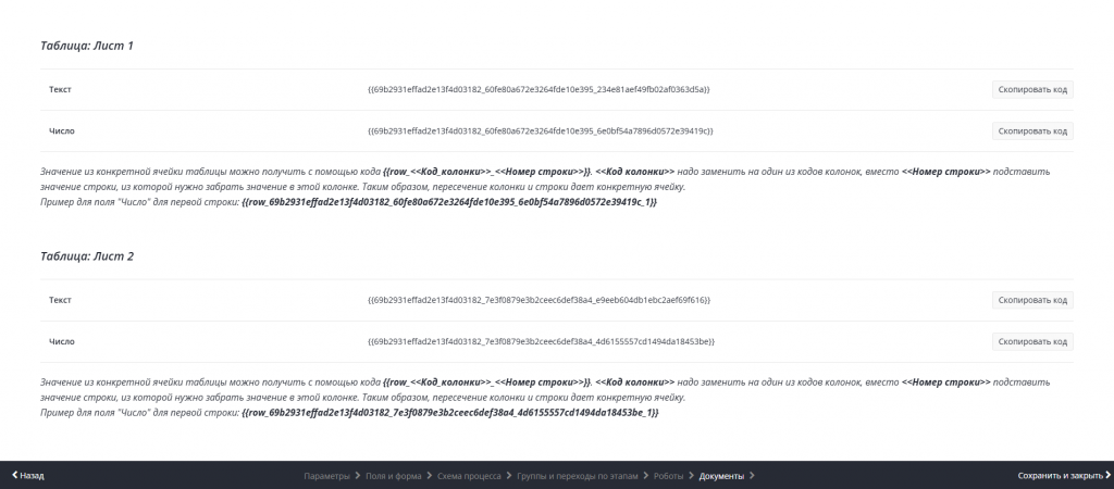 Ранее код колонки можно было использовать только для подстановки значений из таблицы в шаблон документа, а сам код можно было увидеть на вкладке «Документы» при редактировании бизнес-процесса (далее – БП):